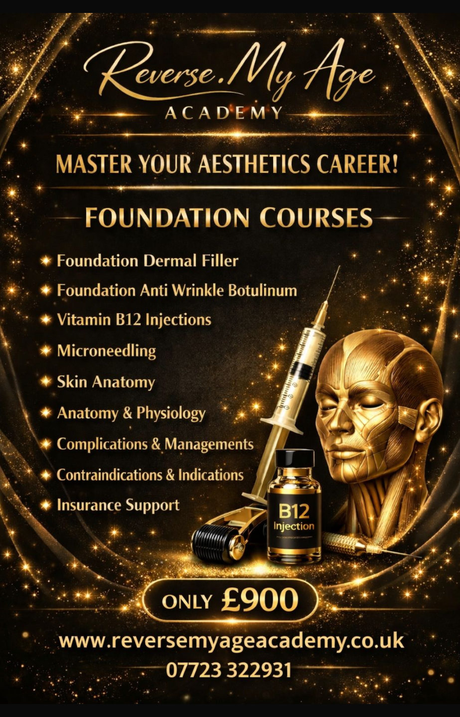 We offer foundation and advanced training in all areas of aesthetic medicine, including Dermal Fillers, Anti Wrinkle (Botox) treatments, Anatomy & Physiology, Vitamin B12- Vitamin C - Biotin Injection  Vitamin B Complex - Vitamin D  Glutathione injection., Aqualyx, Non Surgical Rhinoplasty, Tear Trough, Lips & Complications in Aesthetics.